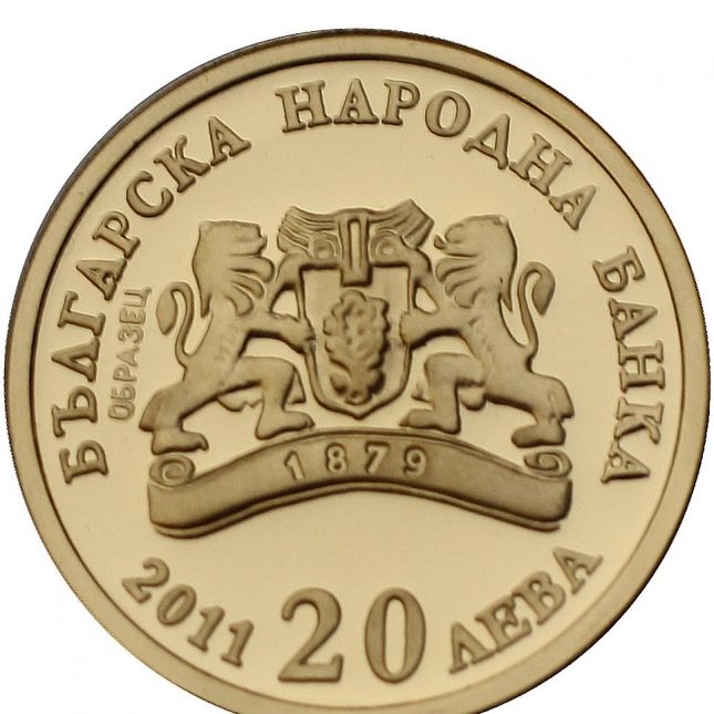 На лицевата страна на монетата е изобразена емблемата на Българската народна банка с годината „1879”, изписана върху лентата. Околовръст са изписани „БЪЛГАРСКА НАРОДНА БАНКА” , номиналната стойност „20 ЛЕВА” и годината на емисия „2011”.