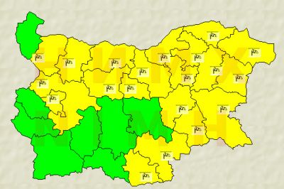 Останалите области в които е обявен код жълт са София-град, София-област, област Монтана, Врачанска, Плевенска, Ловешка, Великотърновска, Габровска, Русенска, Разградска, Силистренска, Търговищка, Шуменска, Добричка, Бургаска, Ямболска, Сливенска, Хасковска и Кърджалийска.