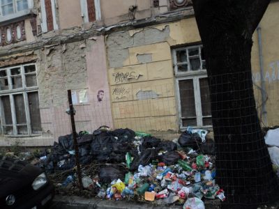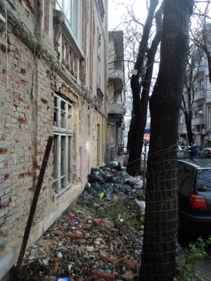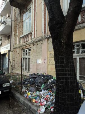 Сградата освен това е в окаяно състояние и вероятно това е причината за ограждането на тротоара. Очаквайки механизма на администрацията да заработи остава въпроса: Защо хората си хвърлят боклуците там, дори и след като е изчистено?