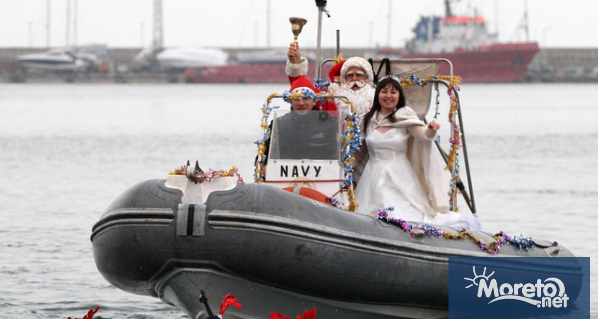 Дядо Коледа пристигна във Варна. Той дойде обаче не по традиционни начин - с шейна. Белобрадия старец доплава с лодка във Военноморската база във Варна. Лодката беше теглена от елени водолази.