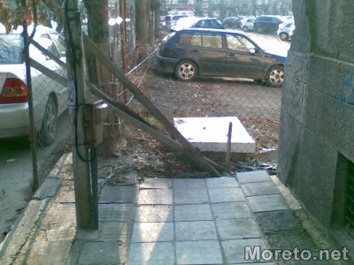 Както при повечето строителни обекти, така и в този случай, тротоарът бе заграден от гледна точка на безопасност.