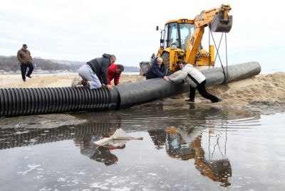 Работици поправиха тръбите на минералните бани във Варна. Припомняме, че те бяха разрушени от бурните ветрове и образуваха езеро, в което водата се застояваше и затлачваше с кал част от пясъчната ивица.