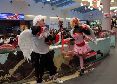 А по коридорите на Града на шоколада, виното и любовта в Grand Mall съвременни Афродита и Амур забавляват посетителите и раздават меденки с любовни пожелания.