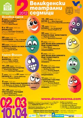 В афиша на великденските театрални седмици намира място хитовият спектакъл „Ричард III” с четири номинации за наградите „Икар”. Два пъти ще бъде завъртяна и „Американска рулетка“. Феновете на Мелпомена ще могат да видят още „Вражалец“, „Бремен”.