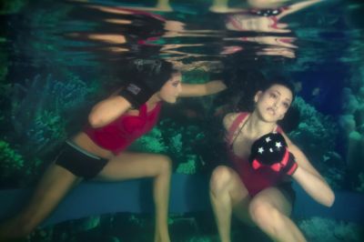През изминалия уикенд моделите Тея Янева и Йоана Гахреман Аламдари Бадлу заснеха подводата боксов двубои и влязох в роля на морски нимфи търсещи съкровище.