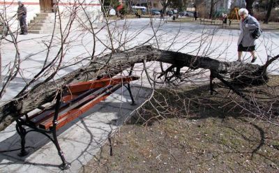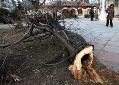 Инцидентът се случил днес около обед в района храм "Св. Петка". Изсъхналият клон се стоварил върху пейка и я потрошил. За късмет жената, която само преди минути стояла там вече я нямало.