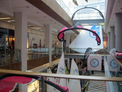 Когато става дума за адреналин обаче, голямото явление в световен мащаб е кайт сърфът. Най-много кайтове в Grand Aqua City носи клуб ”Воден свят” от Варна. Във високите пространства на най-големия търговски център край морето се реят различни типове крила – от най-малкото, предназначено за много силен вятър - 5 кв. м, до най-голямото, което лови слаб вятър с площ от 14 кв. м.
