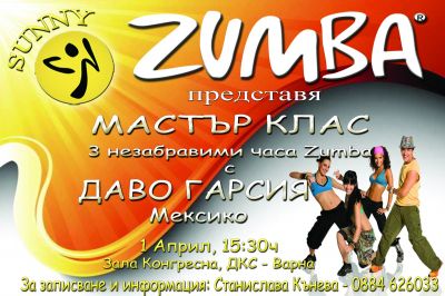 На 1 Април 2012г от 15:30ч екипът на Sunny Salsa & Sunny Zumba Ви канят на едно незабравимо събитие – Мастър Клас по Zumba Fitness с невероятния Даво Гарсия.