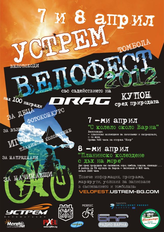 Велоклуб УСТРЕМ и Радио Варна организират първия и уникален за Варна масов празник на колоезденето и на любителите велосипедисти - УСТРЕМ ВЕЛОФЕСТ’ 2012. Двудневният фестивал ще се проведе на 7 и 8 април сред природата в околностите на град Варна и е отворен за участие за всички желаещи.