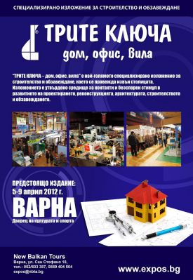 34-то издание на специализирано изложение “Трите ключа – дом, офис и вала”, бе открито днес днес в Двореца на културата и спорта във Варна. В него участват 78 фирми- производители, вносители дистрибутори в областта на строителството, обзавеждане, дограми, щори, възобновяеми енергийни източници, градинска и паркова техника и др.