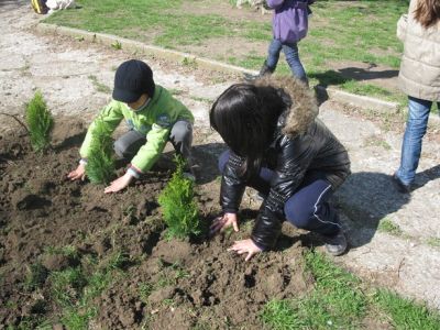 На 10 и 11 април второкласници от варненското училище, обединени от своите клубове - "Светът около мен" - ІІ "Б" и "Аз опознавам, пазя и обогатявам света около мен" - ІІ "Г", засадиха в двора на училището 10 туи и 10 броя рози.