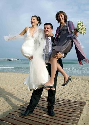 тоз момък на снимката, с какво се е уредил освен с булка? балдъза или свекърва? горкия-да носи две жени на ръце...