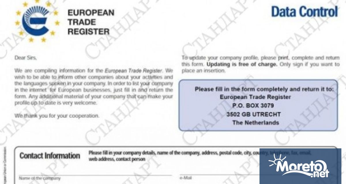 Онлайн търговски регистър със седалище в Холандия зарибява фирми с безплатна реклама. Поканата до компаниите е за периода 2012-2013 година и съобщава, че включването в него не струва нищо, съобщи Дартс нюз.