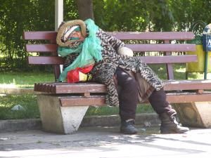 Лесно ще я намерите. От месец се е настанила на една от пейките в парка на Червения площад, точно срещу Младежкия дом. Там спи, там яде, там си облекчава нуждите. Някои хора я съжаляват. Когато се опитат да й подадат закуска, тя им се разкрещява. Гони ги с вулгарни думи или им казва, че й пречат, че таман щяла да се събува, за да се изходи. Тъй че да се махат. Други й правят забележка заради пикаенето пред пейката. Към тях е още по-враждебна.