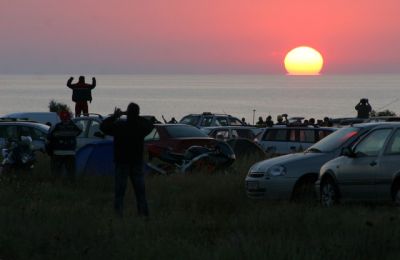 Малка част от присъстващите пристигнаха на мястото минути преди изгрева, докато останалите прекараха нощта на култовия бряг - някой в палатка, под открито небе или в автомобили.