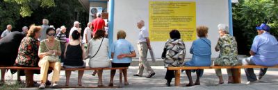 Върволица от пенсионери се изви пред пунктовете за продажба на карти и за градския транспорт. Въпреки адската жега вчера преди обед над 500 души окупираха пространството пред централния пункт в близост до синия пазар.