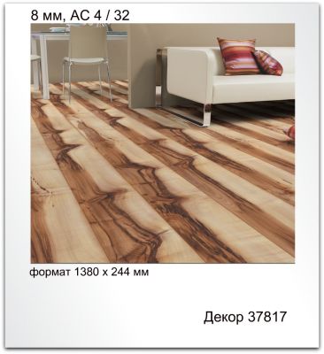 Вторият е с формат 1380 х 244 х 8 мм, с двустранна декоративна фаска и безкрайни фигуративни елементи на дългата част на ламелата. Той е емблемата на колекция 2012 и също до момента в KAINDL не е създаван такъв тип декор от гледна точка на фигуративност. Уникалното при него е, че е много впечатляващ още от пръв поглед, иновативен и дори може би малко ексцентричен, но все пак имитиращ естествено дърво. В никакъв случай не може да остане незабелязан. Поради силно изявената си фигуративност, не е подходящ за малки помещения, но със сигурност би внесъл неповторим акцент в помещения за обществено ползване. Номер от номенклатурата: 37817