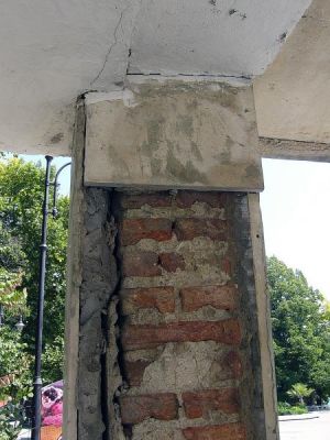 Там, където е направен опит плочите да се залепят, това е сторено по безобразен начин. Налепен е някакъв фибран, който да запълни образувалите се пукнатини. И с просто око обаче е видно, че конструкцията, която е един от най-значимите символи на Варна, се нуждае от сериозен ремонт. Пукнатините са не само по колоните, но и по своеобразните арки, които ги свързват. Мазилката изглежда така, сякаш всеки момент ще се срути. Има и по-големи каменни блокове, които могат да паднат върху главите на минувачите. Ежедневно през портала минават хиляди варненци и гости на града.