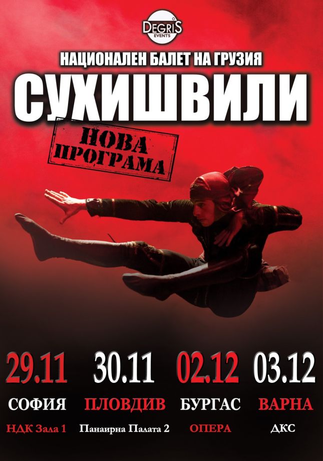 Сухишвили - най-добрият ансамбъл в света /според Вашингтон пост /, поставил рекорд в „ Ла скала „ , който остава прецедент в историята на залата - публиката извиква танцьорите на бис 14 пъти, обявен с танцовата си програма за най – доброто шоу в Бродуей, стартира турне в България.