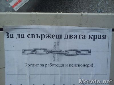 До кредити прибягва не едно варненско семейство с по няколко ученици, за да може да свърже двата края покрай първия учебен ден. Като купят раници, учебници, тетрадки, пособия и дрехи за децата, не им оставят никакви пари, за да покрият другите семейни разходи, разказа за “Народно дело” лихвар, пожелал анонимност. Повод за материала ни стана негова реклама по улиците на Варна, където се посочва, че предлага пари на хората „за да свържеш двата края”. За да се онагледи услугата, е изобразена и верига. Кредитната линия е предназначена за „работещи и пенсионери”. Колкото и грубо да звучи, за услугата определено клиенти не липсват. По думите му днес хората трудно вързват двата края. Прибягват до услугите им предимно като закъсат с плащането на сметките или когато се наложи да правят ремонти по къщата. Клиентите са всякакви – има такива, които живеят в суперлукс, и други - с найлони на прозорците, разказва кредиторът. Възрастовият им диапазон също е доста широк – от току-що навършили пълнолетие младежи, до пенсионери на преклонна възраст. Средно на седмица отпуска от 50 до 80 заема. Сумите са различни – от 50 - 100 до 1000 лева.