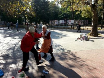 Две баби се сбиха зрелищно в центъра на Варна. Спорът между възрастните жени, които са плетачки на чорапи, избухнал заради мястото, на което да продават стоката си.