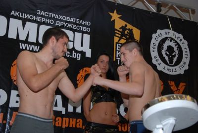 С кантара на състезателите за турнира по свободни боеве Cage Оf Glory II приключи интерлюдията преди голямото събитие. Същинските схватки са днес от 20 ч. в зала “Конгресна” на ДКС. Димитър Урумов от боен клуб ТИМ – организаторите на гала-вечерта, напомни, че билетите за шоуто, които са на цени 7, 15 и 20 лв., са на привършване.