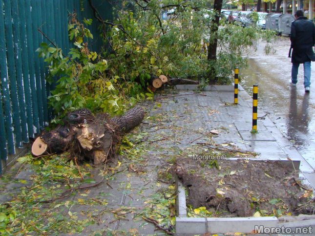 Паднали клони от вятъра и дъжда напукаха покрив и нанесоха щети на автомобил във Варна