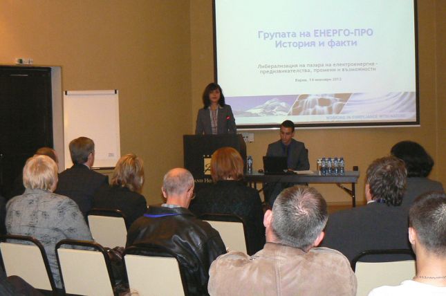 Енерго про Продажби, със съдействието на Институт за енергиен мениджмънт, организира ENERGO-PROfessional Conference на тема: „Либерализацията на пазара на електроенергия – предизвикателства, промени и възможности” днес, 14 ноември 2012 г., във Варна. С този форум електроснабдителната компания има за цел да запознае своите бизнес клиенти със законовите промени, свързани с пазара на електроенергия в страната и да инициира дискусия по актуалните въпроси. Утре издание на конференцията ще има и в град Русе, а на по-късен етап и във всички останали областни градове, на територията на която оперира ЕНЕРГО-ПРО. Гост-лектори на конференцията са Иванка Диловска – Председател на Управителния съвет на Института за енергиен мениджмънт, Виктория Поповска – Ръководител електроенергиен пазар в Електроенергиен системен оператор и Константин Делисивков – Изпълнителен директор на Българска федерация на индустриалните енергийни консуматори. В събитието взеха участие над 120 представители на големия и средния бизнес, както и представители на местната власт и енергийни експерти.