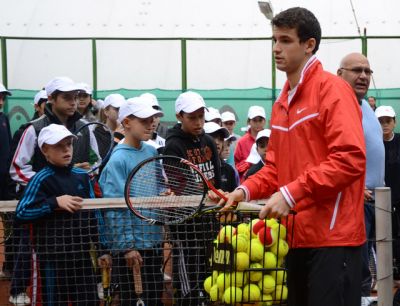 С увеличаването на възрастта на групите срещу него силата на ударите и точността на изпълненията се повишаваха, а през това време оператори и родители направиха цели фотосесии. Откритият урок завърши с кратък разбор, на който голямата звезда на българския тенис благодари на малките тенисисти и им пожела след време да си партнират заедно на международните полета.