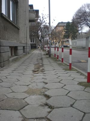 Тротоарът под балконите е покрит с парчета от мазилката. Минаващите се оглеждат с тревога и гледат да преминат по-бързо опасната зона.