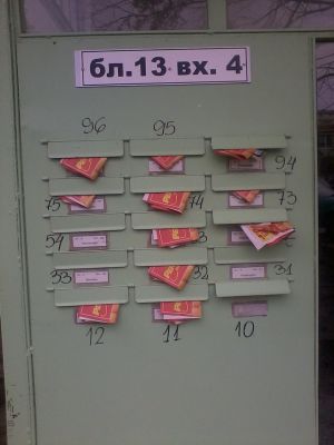 Тая лелка, която е сигнализирала за крайно тежкото нарушение, първо да научи значението на думта "неграмотно". Пощальоните са изписали номерата на апартаментите по кутиите, явно защото на много места липсват. Какви дребни, малки, злобни душички шетат по този свят, направо не е истина. И тази кукумявка, седяла, злобяла, злобяла та решила да напише сигнал. Тц, тц - кой знае, какъв дърт, злобен кукундрел е:)