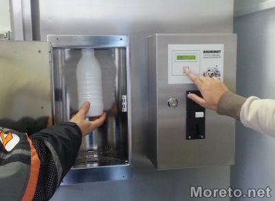 Закупуват се на място жетони, които клиентът пуска в млекомата, слага се шише (на място има пластмасови, но ако искаш можеш да си носиш стъклено), натиска се един бутон и машината започва да отмерва литъра. Това е и минималното количество, което можеш да закупиш за цената от 1,60 лв.