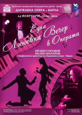 За шести път Държавна опера Варна ще отбележи Деня на влюбените Свети Валентин с „Една любовна вечер в операта”, в която по традиция звучат най-красивите любовни мелодии в изпълнение на най-добрите и обичани български певци. Началото постави преди години Камелия Тодорова, последваха я Мария Илиева, два пъти Орлин Павлов, Васил Петров и сега дойде редът на Орлин Горанов.