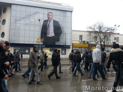 12:20ч. Минавайки покрай сградата на Централна поща, протестиращите освириха лика на Веселин Марешки и се насочиха към Кръглата банка.