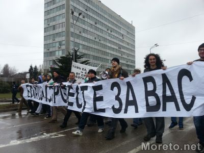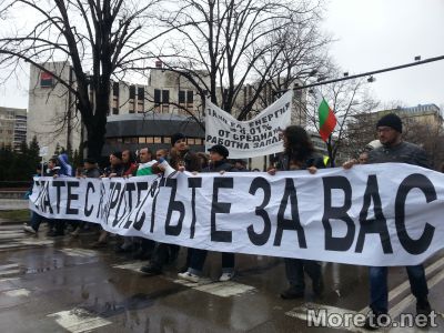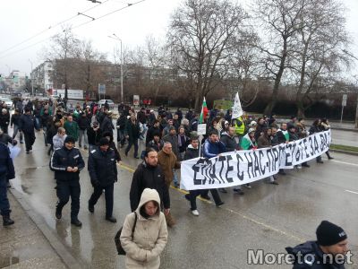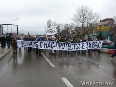 13:35ч. Около 70 човека останаха в редиците на протеста. Движат се към общината.