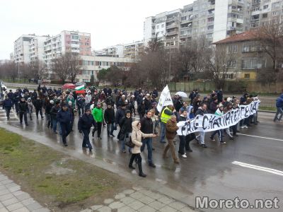 12:30ч. След кратка блокада на кръстовището на Кръглата банка, шествието тръгна по ул.”Отец Паисий”, пресече бул.”Сливница” и се насочи към сградата на ВиК. Започнаха нецензурирани скандирания по адрес на кмета на Варна – Кирил Йорданов.
