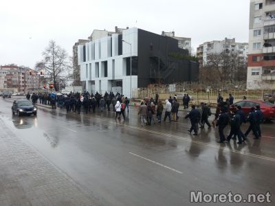 12:50ч. До сградата на ВиК пристигнаха около 100 човека. Днес няма жандармерия. В последния момент бяха изпратени допълнителни екипи от полицаи, да охраняват водоснабдителното дружество.