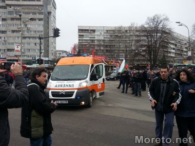 12:10 - Линейка, опитваща да влезне по бул."Вл.Варненчик" бе затруднена от шествието, хората бързо реагираха и й направиха път.