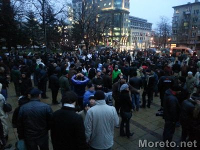 17:59ч. Въпреки лошото време, броят на протестиращите се увеличава, в момента са около 400 души