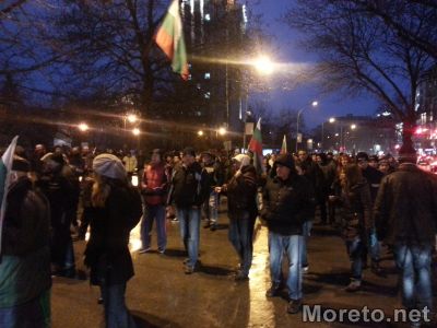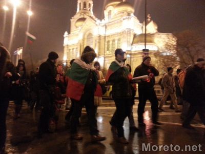 18:57ч. Шествието се насочи отново към Общината с възгласи: "Мафия" и "Българи юнаци".