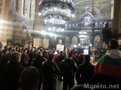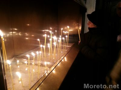 18:40ч. Храмът не може да побере всички желаещи да запалят свещ за Пламен.
