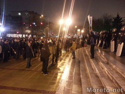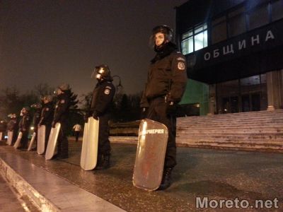 19:07ч. Кордон от жандармерия очакваше протестиращите на входа на Общината със свалени щитове