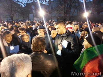 18:59ч. Протестиращите се разделиха на две: "За" и "Против" кмета. Протестиращие на снимката са против Кирил Йорданов.