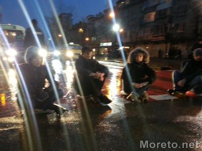 18:04ч. Протестиращи спират движението по булеварда с телата си.