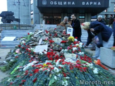 18:06ч. Първоначално протестиращите се събраха пред "Грамадата" и оставиха цветя.