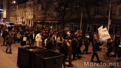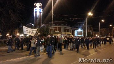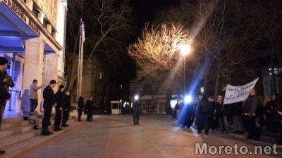 19:40ч. Шествието достигна до сградата на Областна управа. Чуват се скандирания: "Мафия".