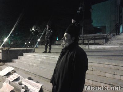 20:12ч. Отецът прочете молитва в памет на Пламен, пред Общината. Хората паднаха на колене.