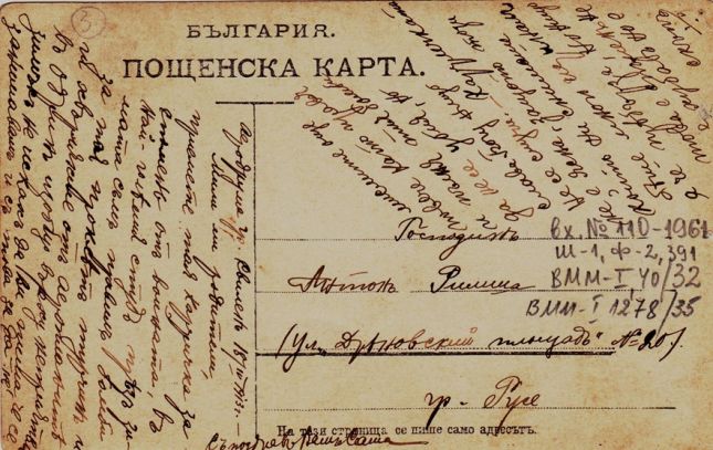 Надписът на гърба на картичката е автентично свидетелство за драматичните мартенски дни на един български моряк при Одрин: