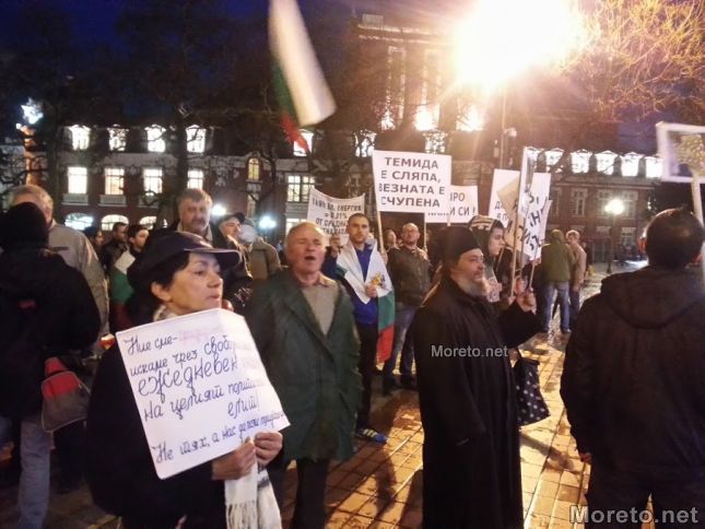 18:47ч. Пред сградата на Съдебна палата, протестиращите скандират „Мафия”, „Корупция” и „В затвора”. Съд за националните предатели.