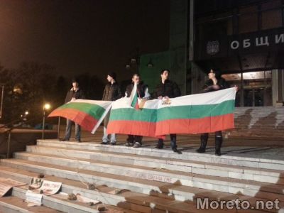 18:23ч. Със скандирания: „Оставка”, протестиращите затвориха кръстовището пред общината.